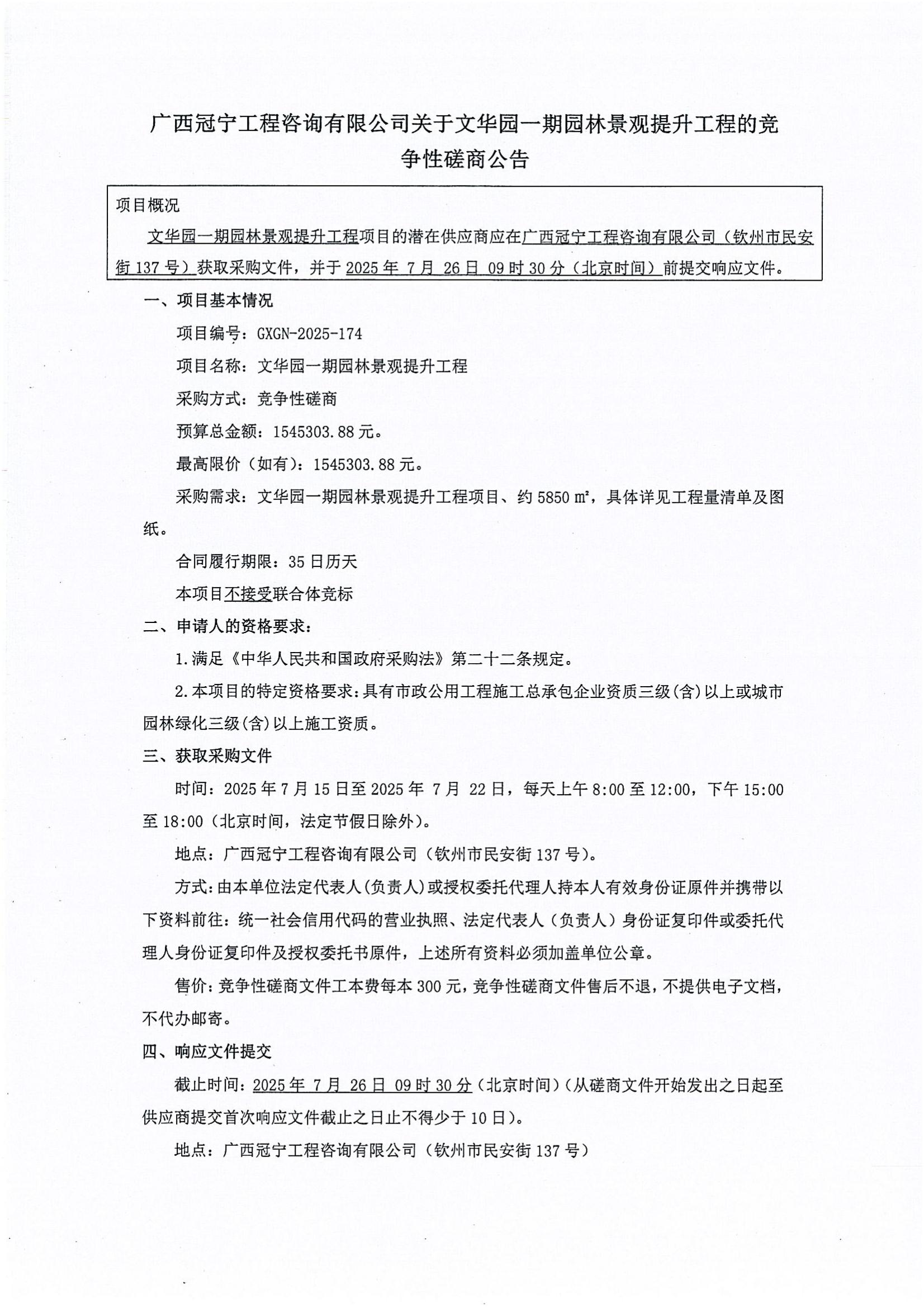 廣西冠寧工程咨詢有限公司關(guān)于文華園一期園林景觀提升工程(項(xiàng)目編號(hào):GX...