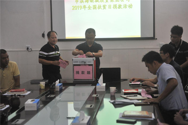(圖為集團(tuán)公司開(kāi)展扶貧捐款儀式,倡議大家共同關(guān)心和支持扶貧事業(yè),慷慨解囊,捐獻(xiàn)愛(ài)心)