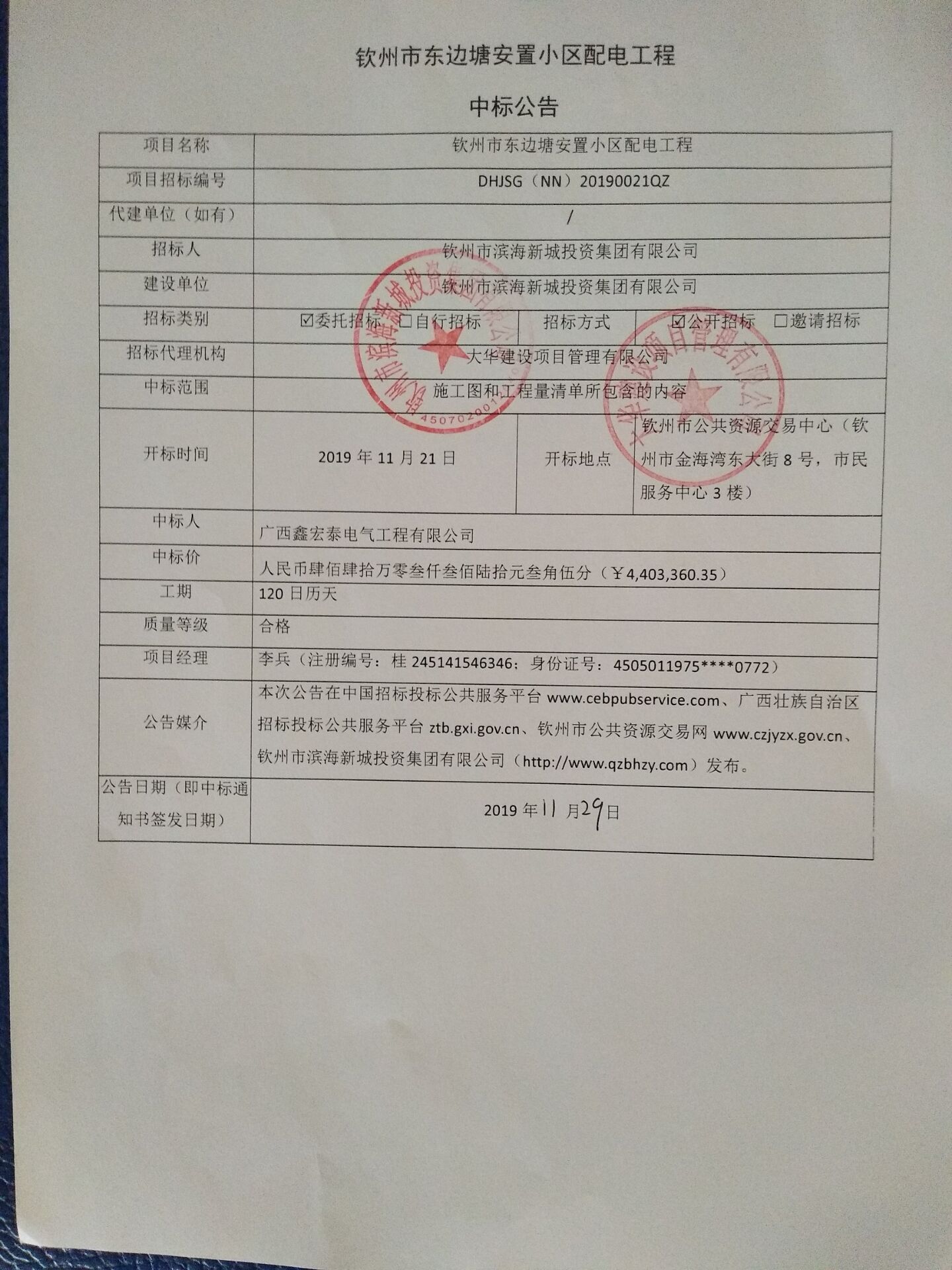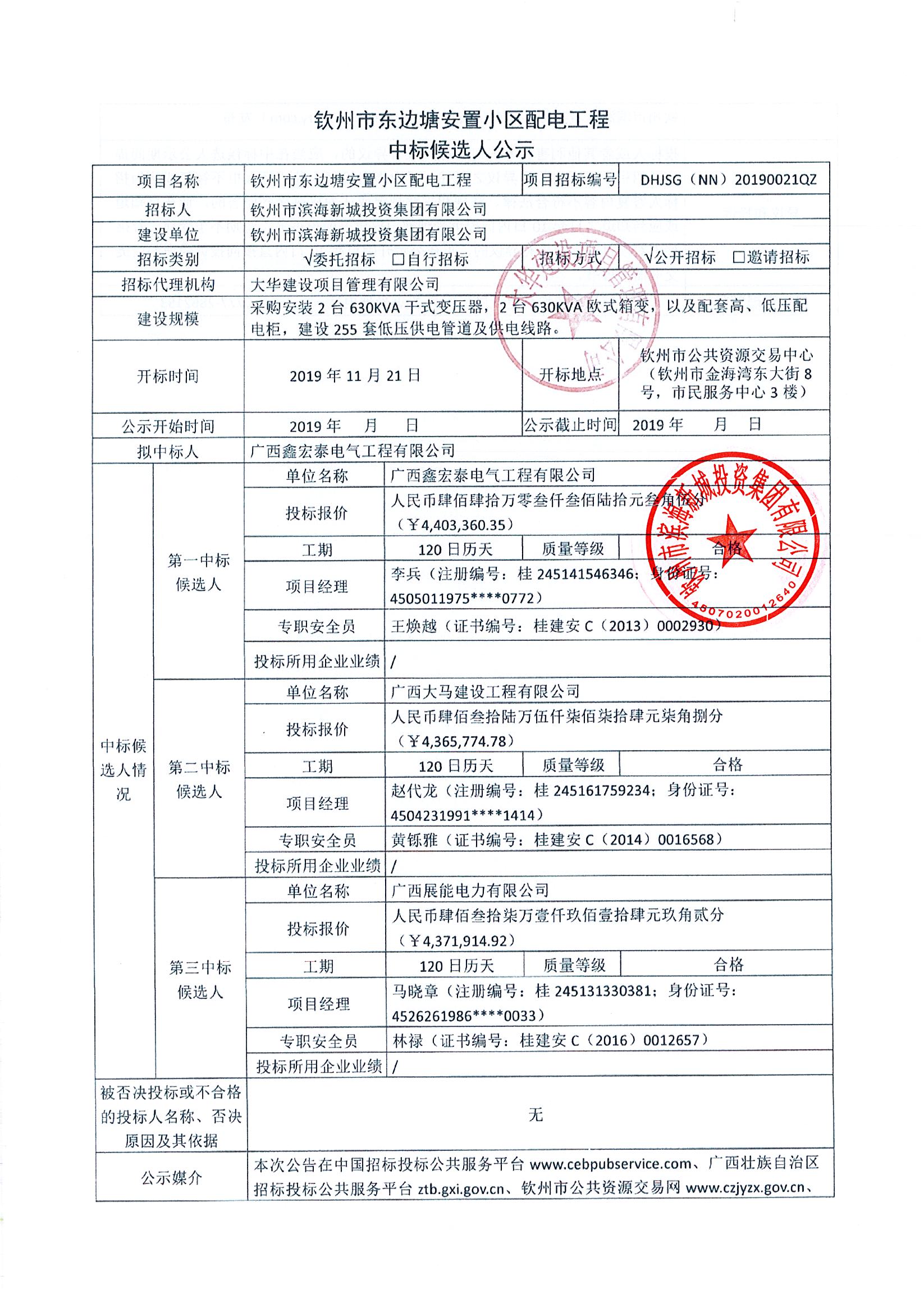 欽州市東邊塘安置小區(qū)項目自來水管網(wǎng)及一戶一表工程中標候選人公......