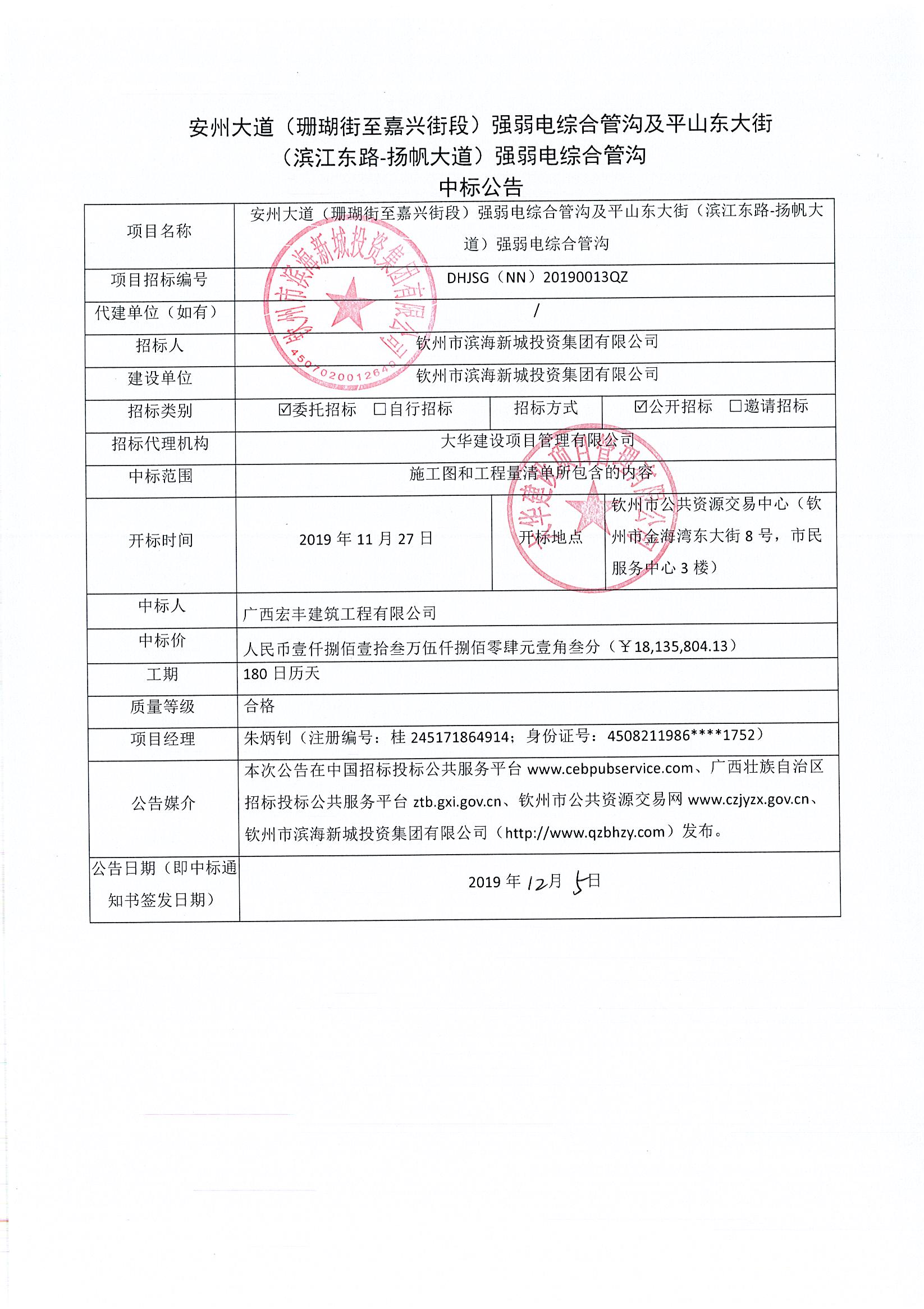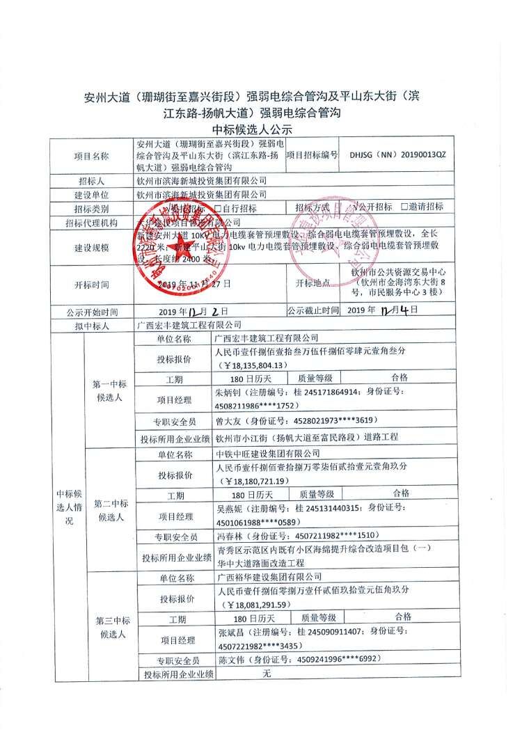 欽州市濱海新城嘉興街(嘉禾街-揚帆大道)道路工程及嘉興街(揚帆大道-安州大道)地下綜合管廊項目、欽州......