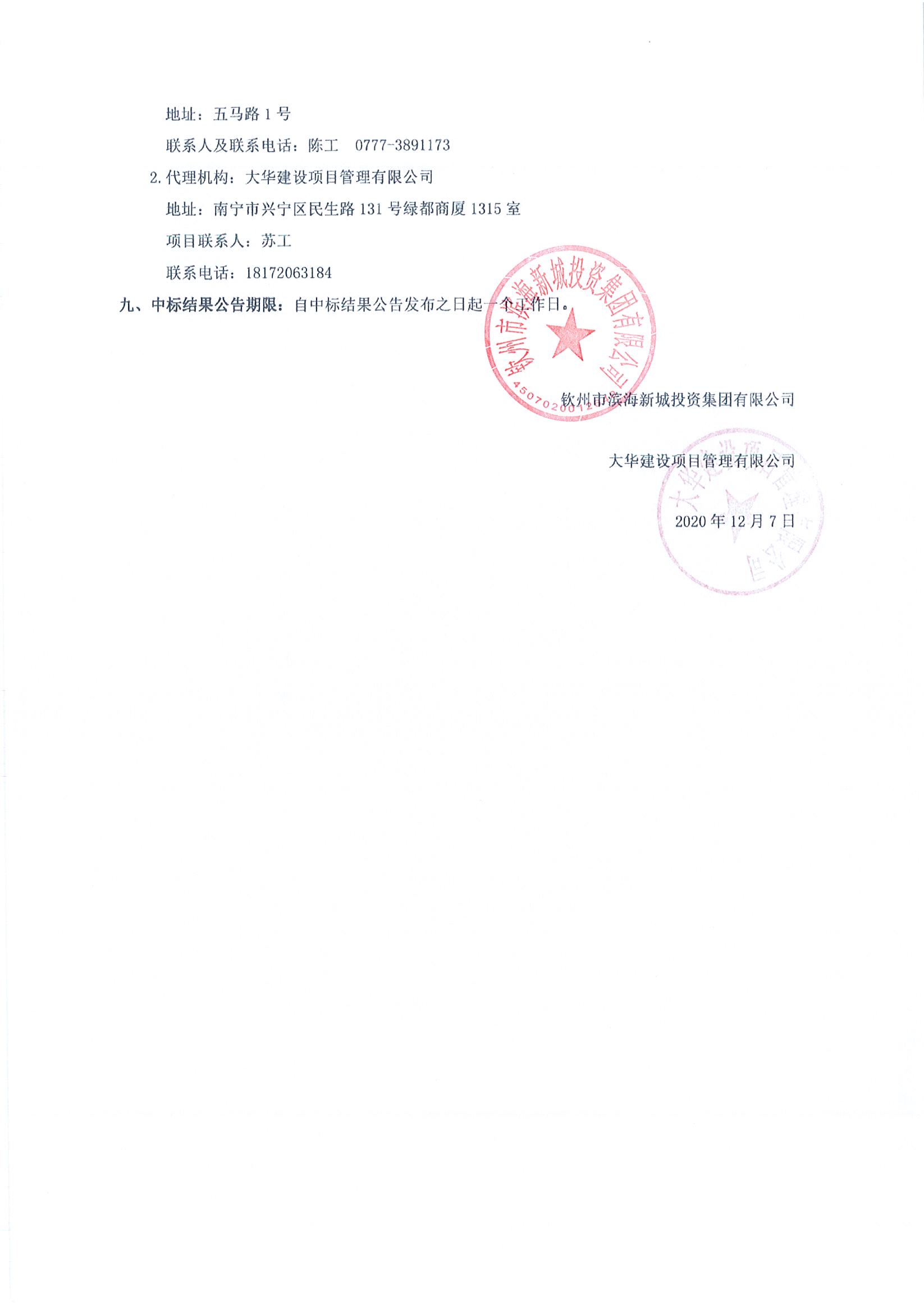 欽州市中山路、占鰲巷旅游開發(fā)項(xiàng)目(一期)歷史名人及革命先賢雕塑制作及安裝采購項(xiàng)目中標(biāo)結(jié)果公告
