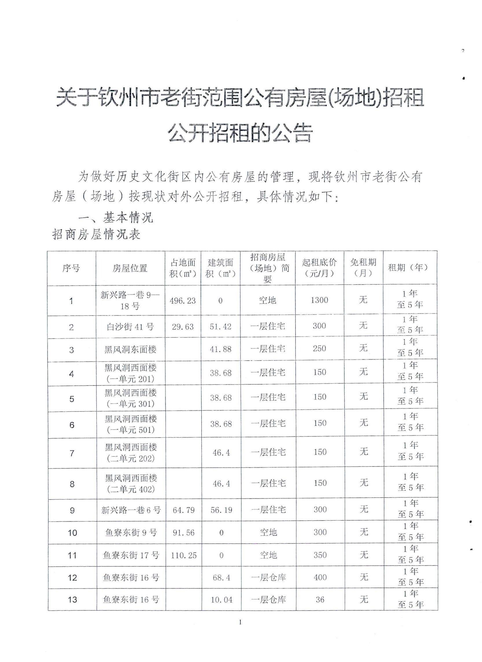 欽州市老街范圍公有房屋(場地)公開招租