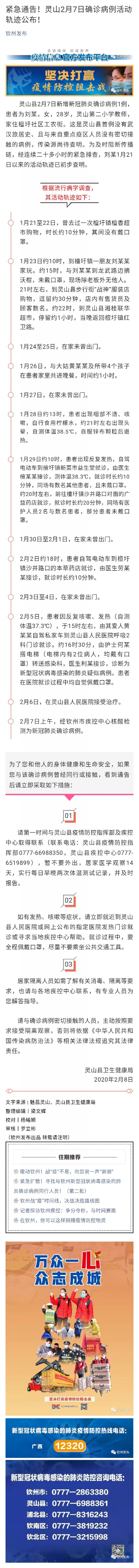 緊急通告!靈山2月7日確診病例活動(dòng)軌跡公布!