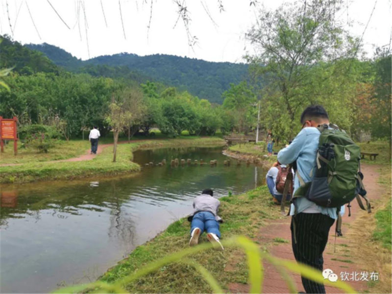 游客在梅園處戲水▽