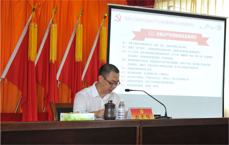為推動落實《黨委(黨組)落實全面從嚴治黨主體責任規(guī)定》,按照市委深入學習貫徹黨中央和自治區(qū)黨委關(guān)于全面從嚴治黨各項部署要求,6月22日下午,集團公司黨委書記趙文博同志以《積極推動全面從嚴治黨向縱深發(fā)展》為主題,講了一堂生動的全面從嚴治黨專題黨課。歷時一個半小時,67名黨員接受黨課教育。