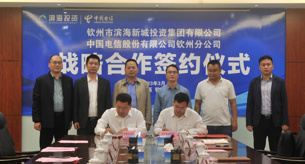 為深入貫徹習(xí)近平新時(shí)代中國(guó)特色社會(huì)主義思想和黨的二十大精神、落實(shí)欽州市委市政府各項(xiàng)決策部署、加快推進(jìn)“數(shù)字欽州”建設(shè),以實(shí)際行動(dòng)踐行欽州市“四輪驅(qū)動(dòng)”戰(zhàn)略,3月16日下午,我集團(tuán)公司與中國(guó)電信欽州分公司簽署《戰(zhàn)略合作協(xié)議》,將在5G、物聯(lián)網(wǎng)、云計(jì)算、大數(shù)據(jù)、網(wǎng)絡(luò)服務(wù)支撐等新技術(shù)應(yīng)用開(kāi)展深度合作,就今后共同推進(jìn)城市大數(shù)據(jù)運(yùn)營(yíng)項(xiàng)目建設(shè)工作達(dá)成共識(shí)。市濱海投資集團(tuán)公司黨委書記、董事長(zhǎng)盧長(zhǎng)任,中國(guó)電信欽州分公司黨委書記、總經(jīng)理羅東分別致辭并簽約。