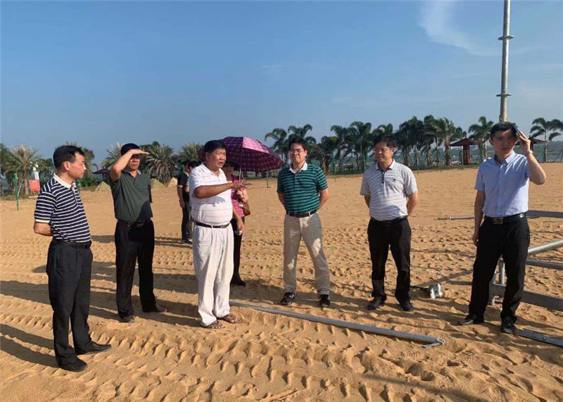 2019年10月9日下午4點,潘定喜副秘書長到我集團(tuán)公司檢查沙灘排球賽項目現(xiàn)場籌備工作。我集團(tuán)公司副總經(jīng)理余業(yè)勝及相關(guān)現(xiàn)場人員到現(xiàn)場迎接檢查。我集團(tuán)公司副總經(jīng)理余業(yè)勝對我集團(tuán)公司開展關(guān)于沙排賽場地建設(shè)的情況做相關(guān)的工作匯報。潘定喜副秘書長聽取匯報后,他首先對我集團(tuán)公司近期在建設(shè)沙排賽場地方面所作出的工作表示肯定,其次他要求各個相關(guān)部門要通力配合,做好沙排賽場地建設(shè)、宣傳、安全保衛(wèi)、醫(yī)療衛(wèi)生、交通保障的工作。