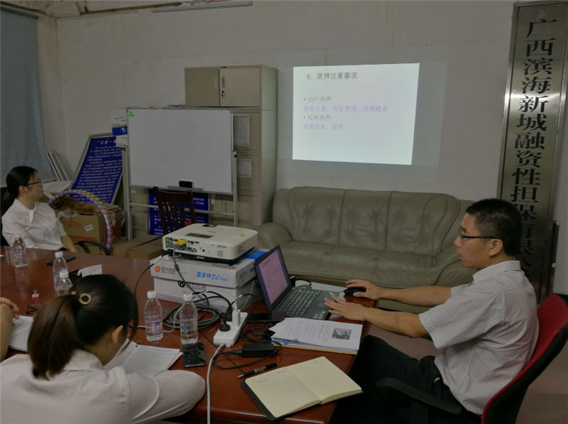 為規(guī)范公司員工的業(yè)務辦理流程,學習和鞏固擔保行業(yè)相關法律知識,2019年10月23日,廣西濱海新城融資擔保有限公司組織全體員工進行了擔保行業(yè)相關法律知識的學習。本次內(nèi)部培訓會由執(zhí)行董事阮經(jīng)欽主持、楊運德總經(jīng)理主講,重點解讀了《中華人民共和國擔保法》、《融資擔保公司監(jiān)督管理條例》及四項配套制度等法律法規(guī)文件。