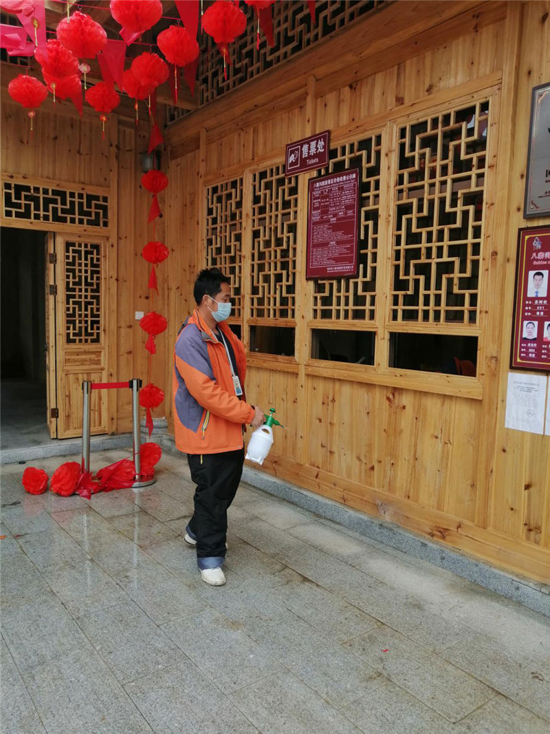 二、為進一步傳達市委、市人民政府有關(guān)疫情防控工作的相關(guān)文件精神,公司領(lǐng)導前往景區(qū)現(xiàn)場指導疫情防控工作,特別強調(diào)當前防控工作形式嚴峻,景區(qū)員工要增強緊迫感和責任感,切實加強景區(qū)人員出入管理及消毒清潔,保障游客及公司員工的身體健康和生命安全;