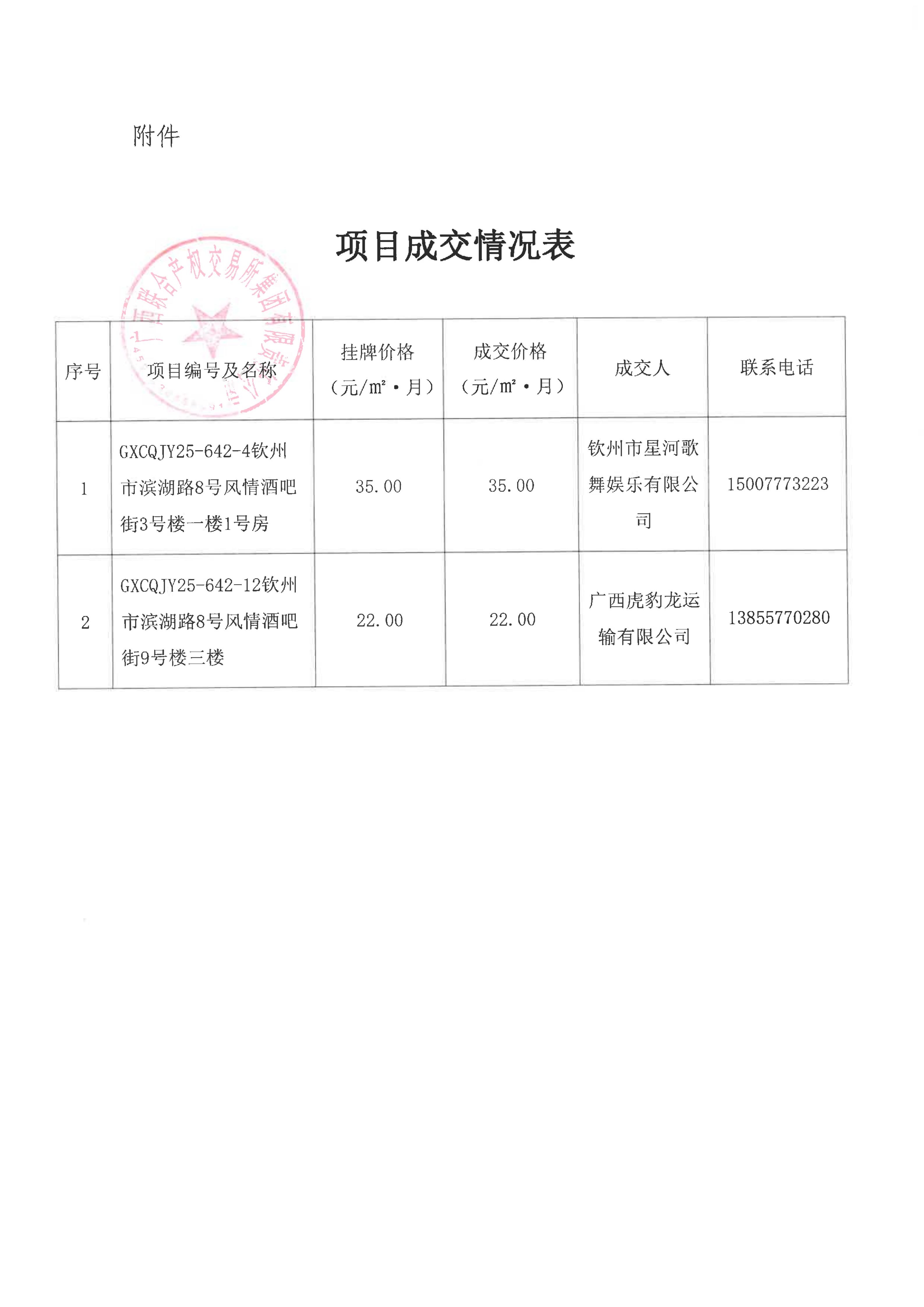 關(guān)于欽州市濱湖路8號風情酒吧街(蘭亭街)房屋公開招租項目成交情況的函(1#-1)