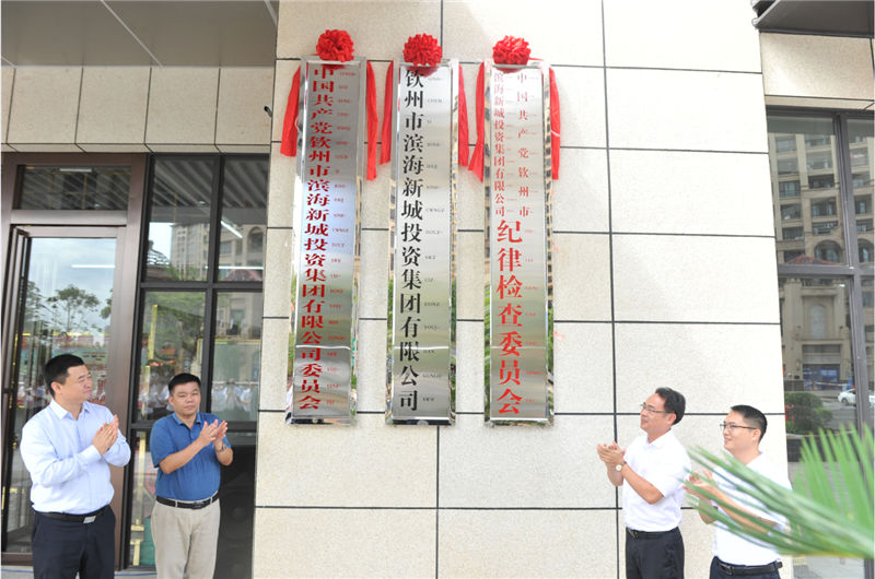 2021年8月12日,欽州市濱海新城投資集團(tuán)有限公司新辦公場(chǎng)所揭牌儀式順利舉行。10點(diǎn)28分,市委常委、副市長(zhǎng)姚永福,市國(guó)資委副主任陸世球,集團(tuán)公司總經(jīng)理黃兆明、黨委副書(shū)記卜玉聲,共同揭牌。紅幕徐徐落下,現(xiàn)場(chǎng)響起一片熱烈的掌聲。揭牌儀式由集團(tuán)公司副總經(jīng)理?xiàng)钚聴澲鞒帧?揭牌儀式結(jié)束后,姚永福、陸世球參觀集團(tuán)公司新辦公場(chǎng)所,與集團(tuán)公司領(lǐng)導(dǎo)座談。