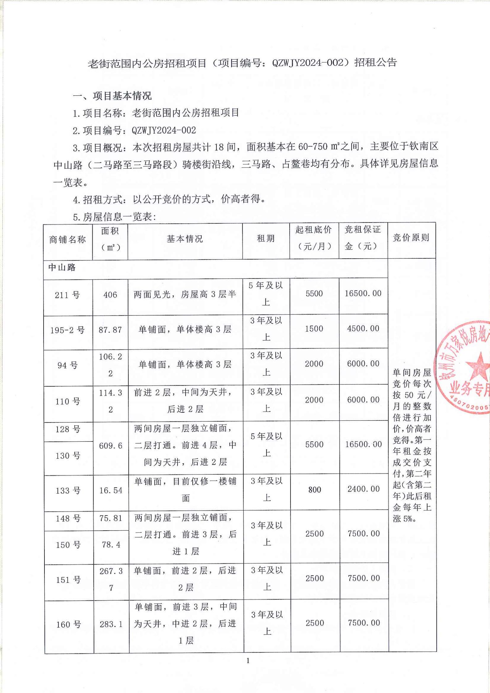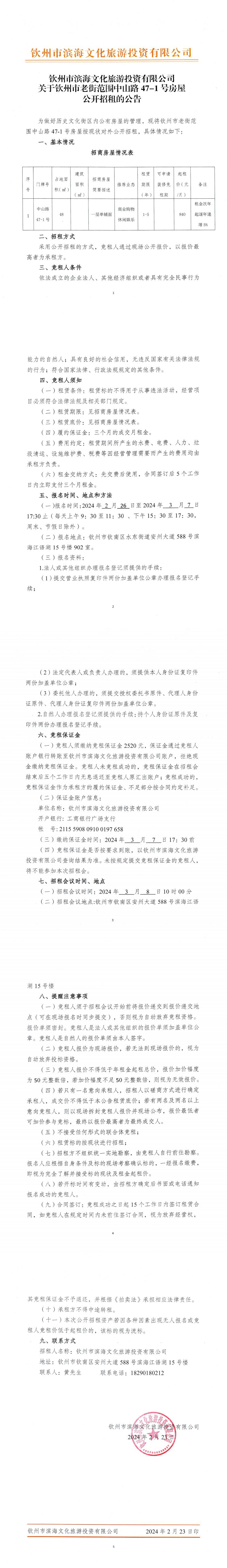 關(guān)于欽州市老街范圍中山路47-1號(hào)房屋公開(kāi)招租的公告