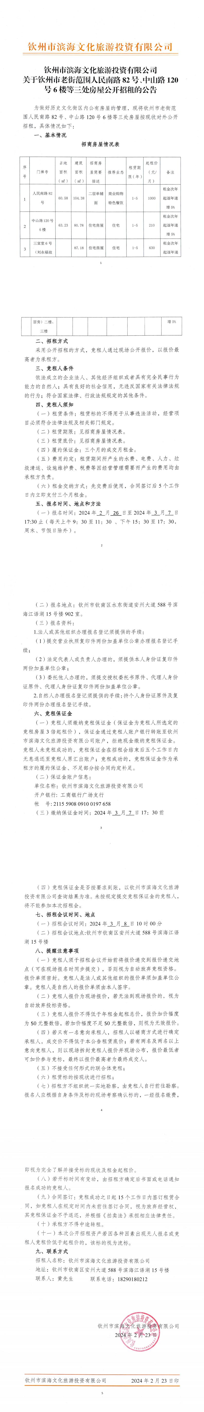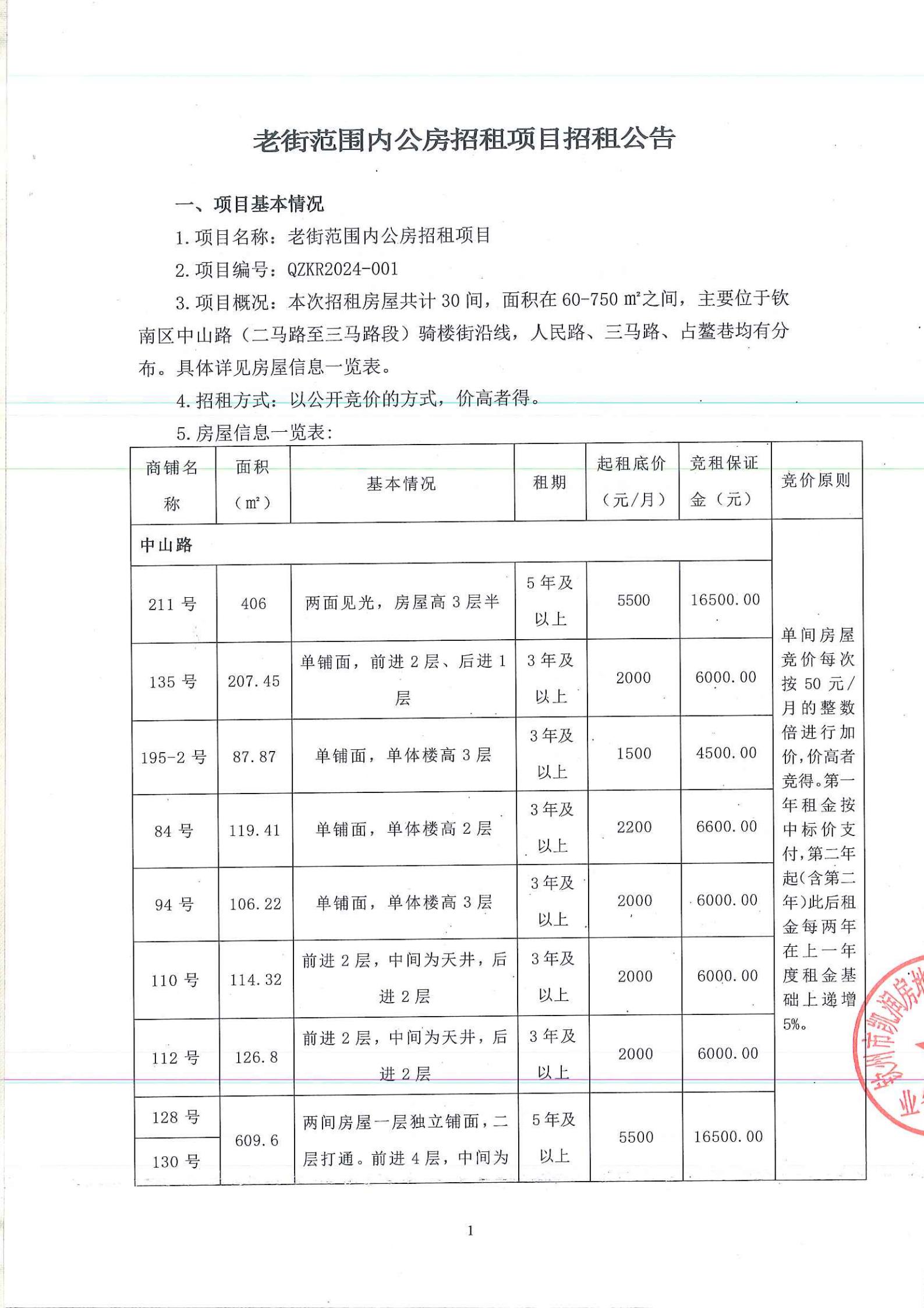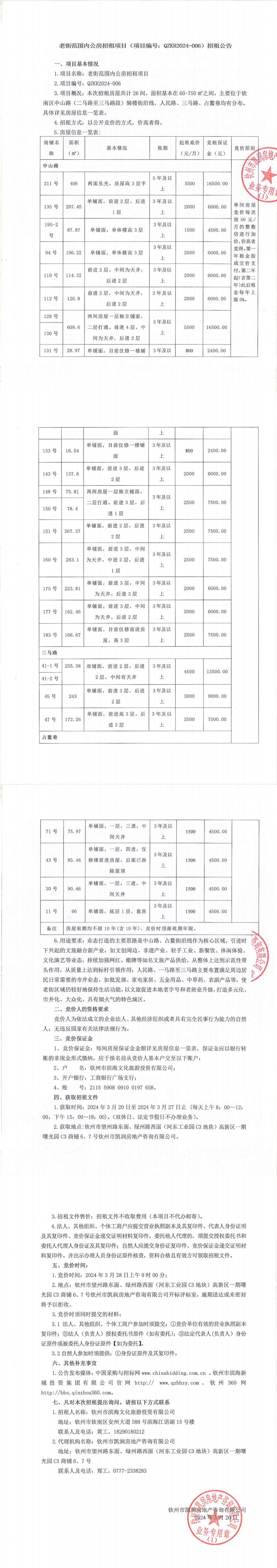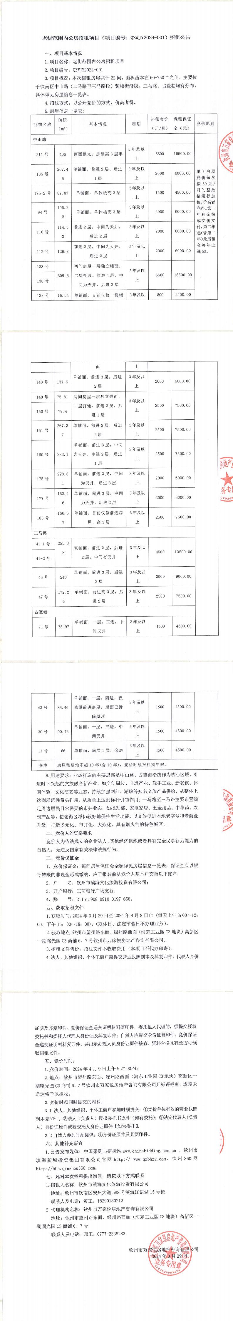 關(guān)于欽州市老街范圍人民南路82號(hào)、中山路120號(hào)6樓等三處房屋公開(kāi)招租的公告