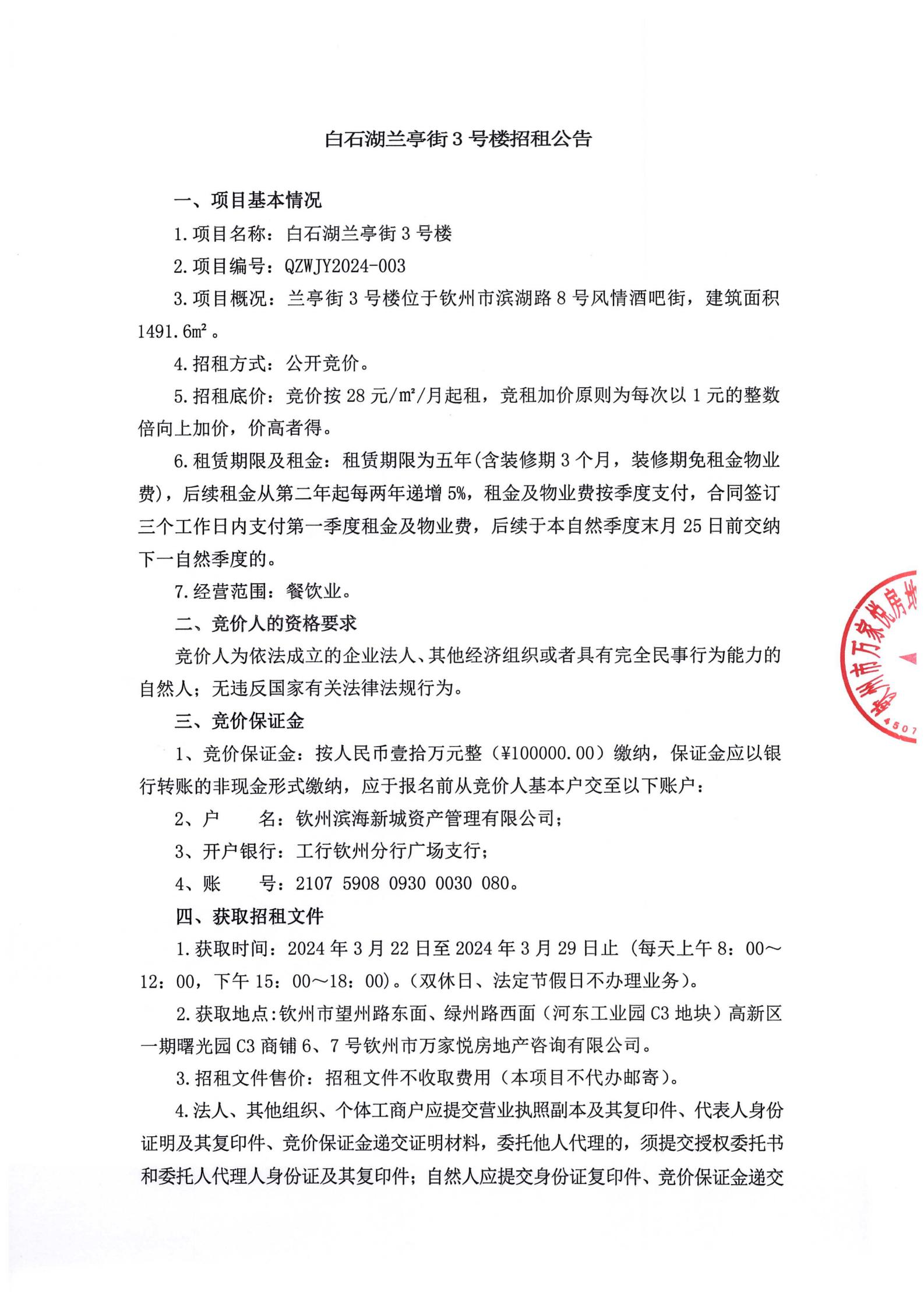 白石湖蘭亭街3號(hào)樓招租公告