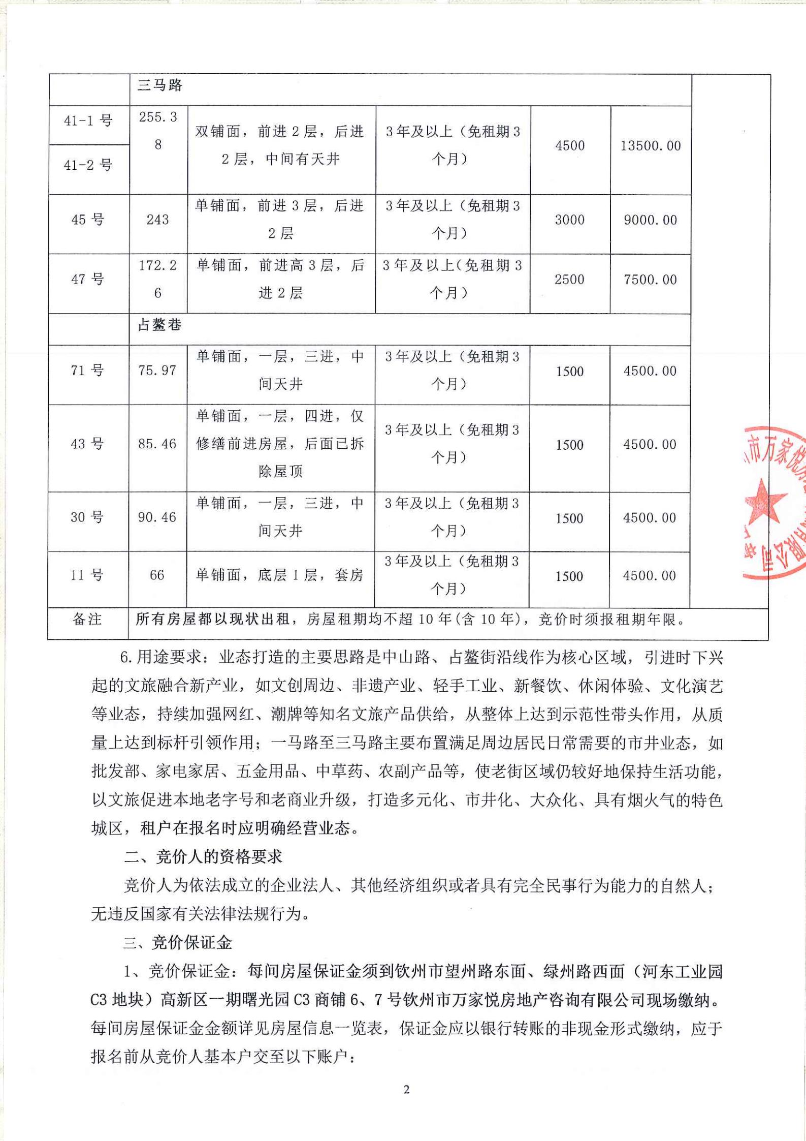 關(guān)于欽州市老街范圍中山路49號房屋公開招租的公告